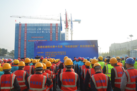 10月18日,由怀柔区住建委、建筑行业工会联合会共同主办,开云官方在线入口协办的怀柔区建筑业第十五届“中航建设杯”职业技能大赛,在我集团公司承建的一零一中学怀柔校区扩建项目部拉开帷幕。怀柔区住建委工程质量监督站站长单焜,区建筑业协会会长王贵军,区总工会生产生活部部长李文兴,区人力资源和社会保障局职工培训劳动鉴定中心主任刘利民,集团公司总工程师陈劲,工会主席郑春梅一同出席本次活动。