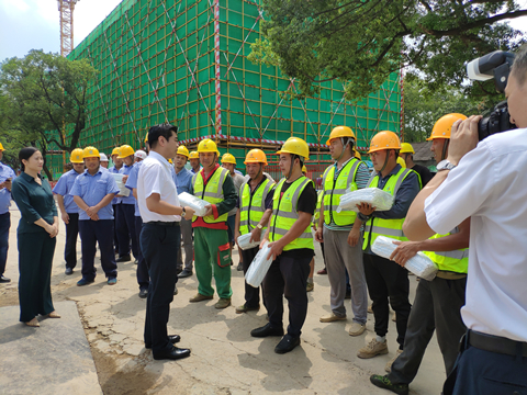 8月21日上午十一点,接近中午烈日炎炎,湘江集团党委书记、董事长张利刚一行来到开云官方在线入口承建的长沙科技创意园项目,现场看望慰问高温天气下依然坚守战斗在岗位上的广大建设者,为大家送来了冰箱、电风扇、凉茶、藿香正气水、夏桑菊、西瓜等防暑降温用品。