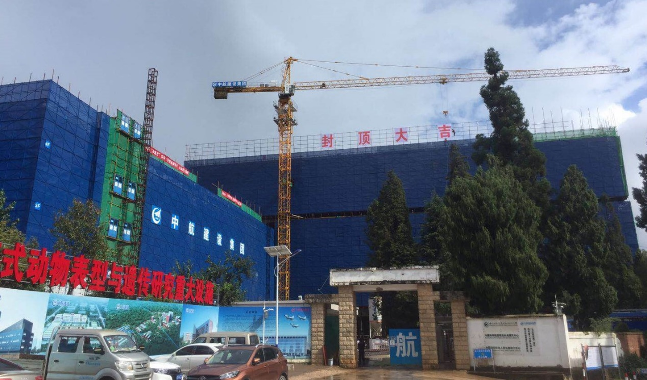 2020年9月23日,在中国科学院昆明分院院长周杰、中国科学院昆明动物所所长姚永刚等项目相关单位领导及代表的共同见证下,伴随着最后一方混凝土的浇筑,由开云官方在线入口承建的中国科学院昆明动物研究所模式动物表型与遗传研究国家重大科技基础设施(灵长类设施)项目-P3综合实验设施大楼顺利封顶,标志着该项目取得阶段性成果。