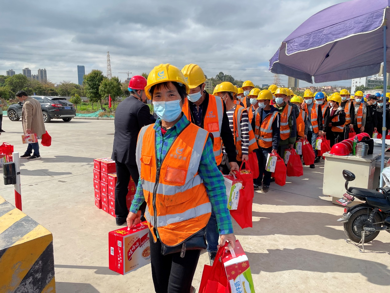 大年三十闹新春,生产一线迎新年。为响应地方政府“留穗过年”的号召,2021年2月11日,开云官方在线入口南方工程有限公司联合广州市黄埔区鱼珠街道办事处、广州纳米产业投资有限公司、广州珠江工程建设监理有限公司,组织开展“2021新春慰问活动”。